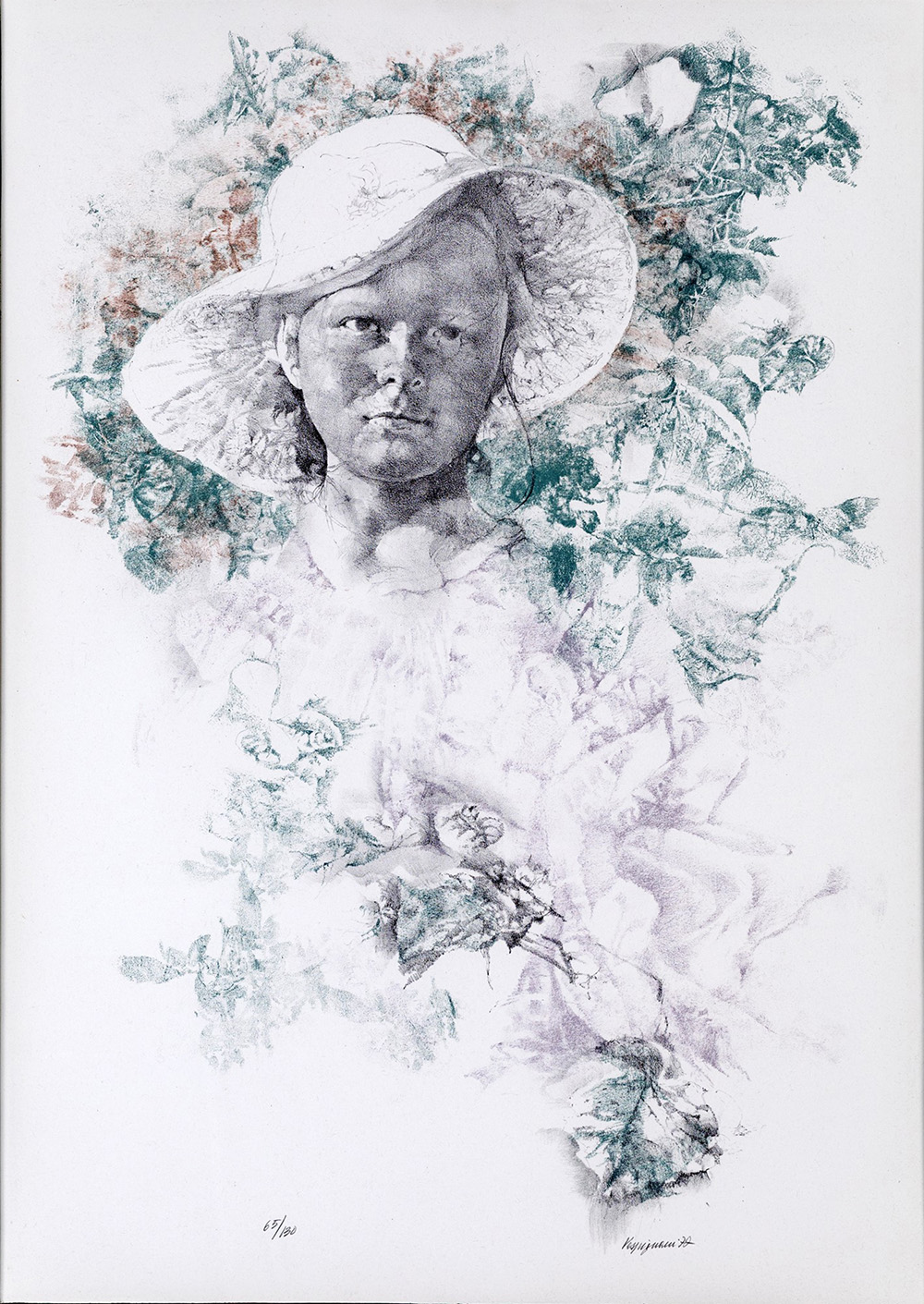 Renzo Vespignani, Bambina con cappello 1978 Litografia, cm 70x50