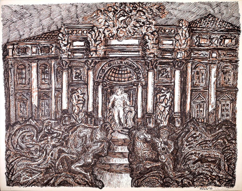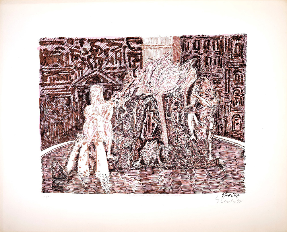Gianpaolo Berto, FONTANE ROMANE Litografia, cm 63x77