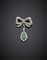 White gold diamond bow brooch with a ct. 1.60 circa pear emerald and diamond cluster detachable pendant, g 7.81, length cm 4, width cm 3 circa.