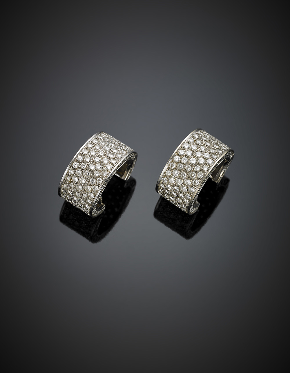 White gold diamond pavé earrings in all ct. 2.50 circa, g 11.97, width cm 1, diam. cm 1.7 circa.
