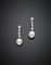 Orecchini pendenti in oro bianco e diamanti a goccia terminati da due perle...