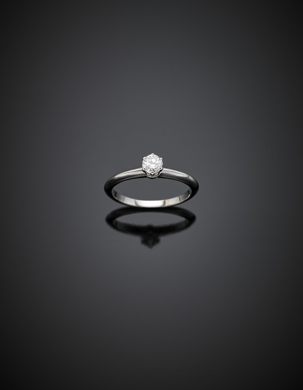 TIFFANY & COAnello in platino con diamante solitario di ct. 0,20 circa, g...