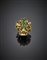 Anello in oro giallo con foglie a tutto tondo e rana in smalto verde....