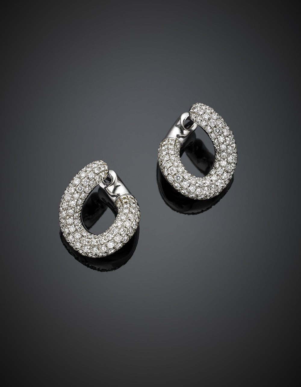 POMELLATOOrecchini in oro bianco rifiniti con diamanti a pavè per complessivi...