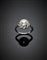 Anello in platino cesellato con diamante centrale di ct. 2,40 circa rifinito con piccoli diamanti e smalto nero a spirale, g 6,31 misura 17/57. (mancanze e lievi difetti)