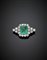 Bi-coloured gold rectangular ct. 8.80 circa emerald and diamond cluster brooch, diamonds in all ct. 5.50 circa g 9.98, length cm 4, width cm 2.2 circa.