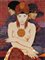 CIVITARESE GOFFREDO (n. 1936) Figure con natura morta. Serigrafia polimaterica su stoffa damascata. Cm 50x80. Tir. XXX1V/C al retro. Firma in basso a sinistra.