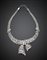 Collier a nastro con centrale amovibile in oro bianco, diamanti a goccia e a navette per complessivi ct. 134 circa, prolunga a catena in oro bianco, g 125,16, lungh. cm 51 circa. (mancanze)