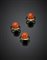 Lotto di tre anelli in oro giallo e corallo arancione, complessivi g 13.Il...