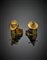 Due pendenti in oro giallo 585/1000 con occhio di tigre scolpito a guisa di...