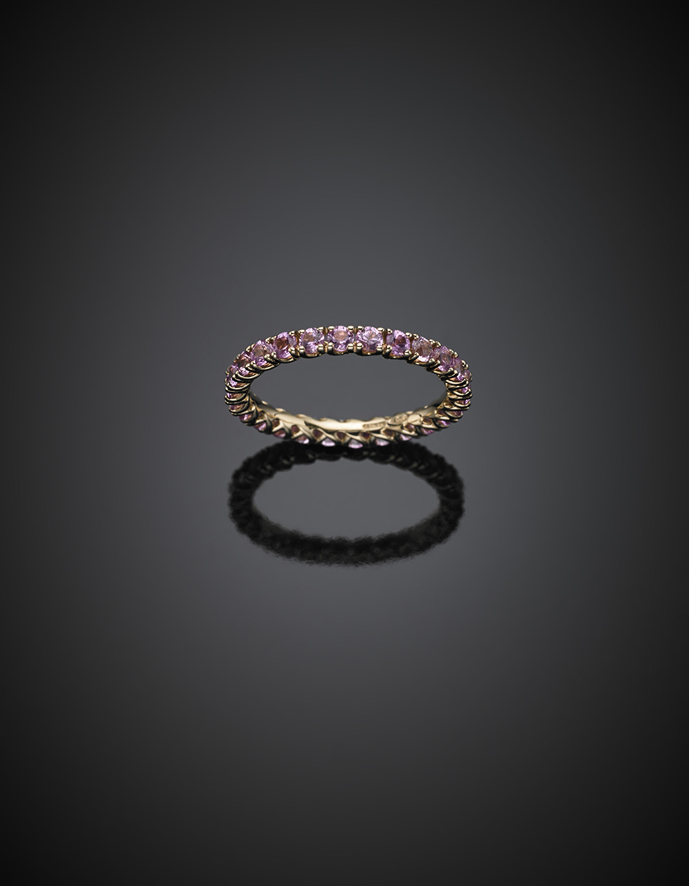 *DI GREGORIOFedina eternity in oro giallo con zaffiri rosa per complessivi...