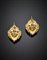 Orecchini in oro giallo a guisa di foglie con rose in rilievo, g 9,04, lungh. cm 3,8 circa. (difetti)