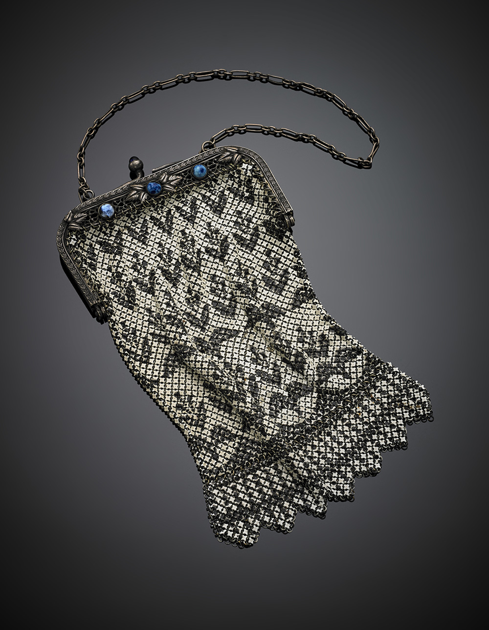 Borse da sera prodotte tra gli anni 1898 e 1940 da Sahatiel Mandalia in North Attleboro, Massachusetts g 188,6, lungh. cm 36, largh. cm 10,5 circa. Marcato Mandalia MFG Co, Big-van.