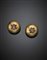 Orecchini in oro giallo cesellato rifiniti con rubini e diamante a mezza rosetta, g 15,09, diam. cm 2,2. 35 VA. (difetti)