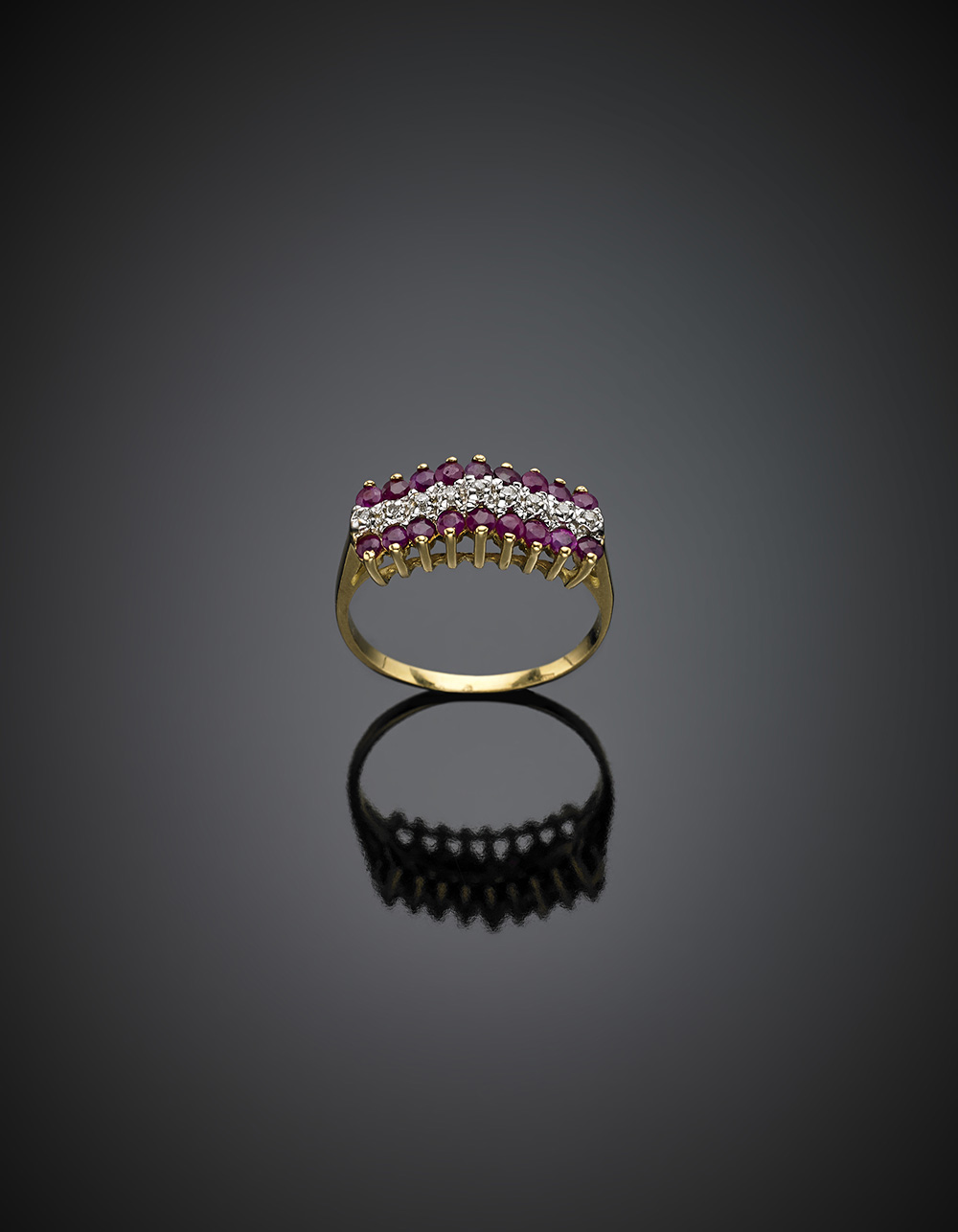 Anello in oro giallo, diamanti e rubini g 3,2 misura 16/56.-ENRuby and...