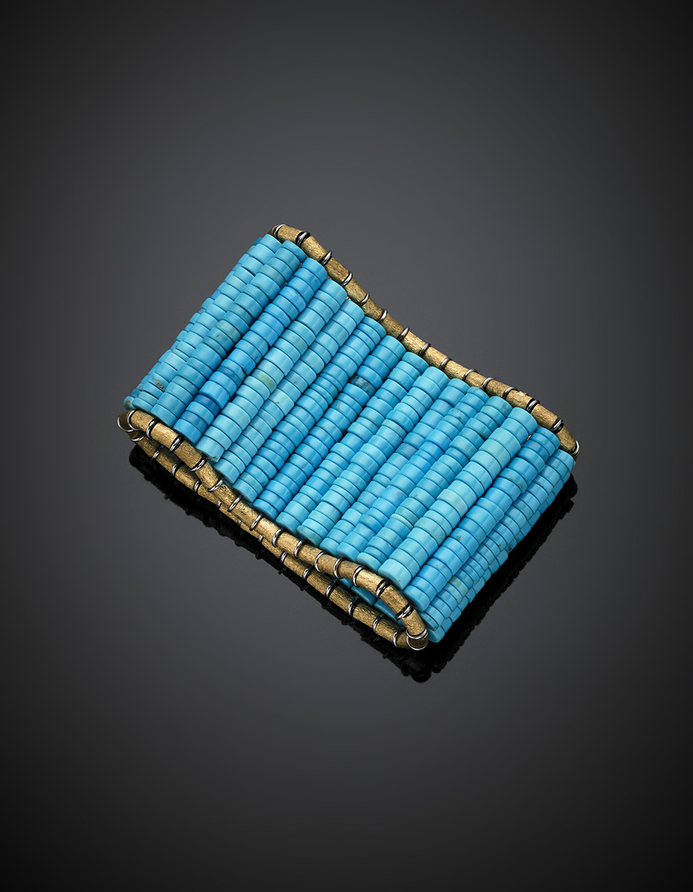 LOFFERDO DEMEGLIOBracciale elastico a fascia oro giallo cesellato e turchesi,...