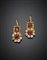 Orecchini pendenti in oro giallo rifiniti con perle e rubini sintetici, g...