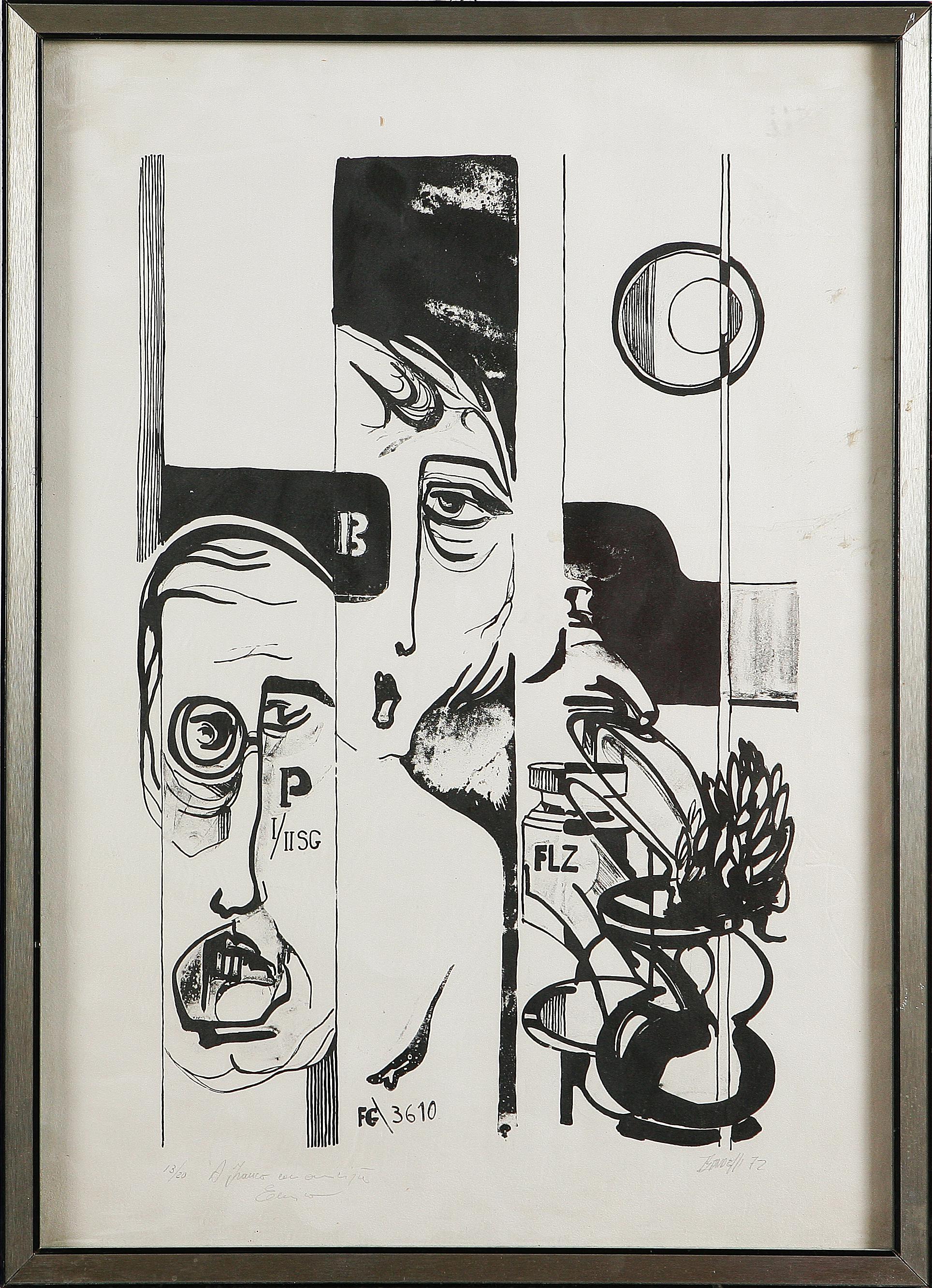 BANDELLI ENRICO (n. 1941) Senza titolo. 1972. Litografia. Cm 40x60. Tir. 13/20 in basso a sinistra; dedica in basso a sinistra a matita. Firma e data in basso a destra a matita. Cornice presente.