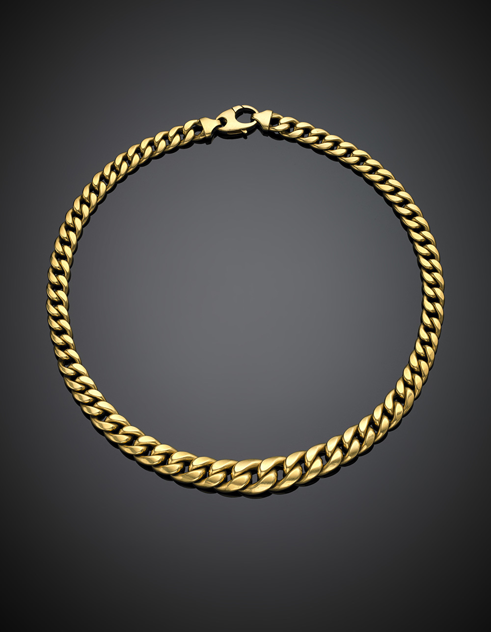 Collier in oro giallo a maglia groumette a scalare, g 42,65, lungh. cm 45...