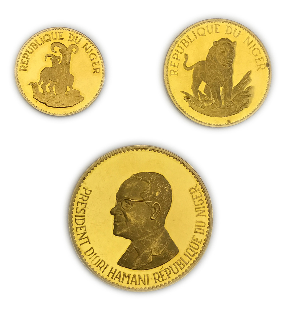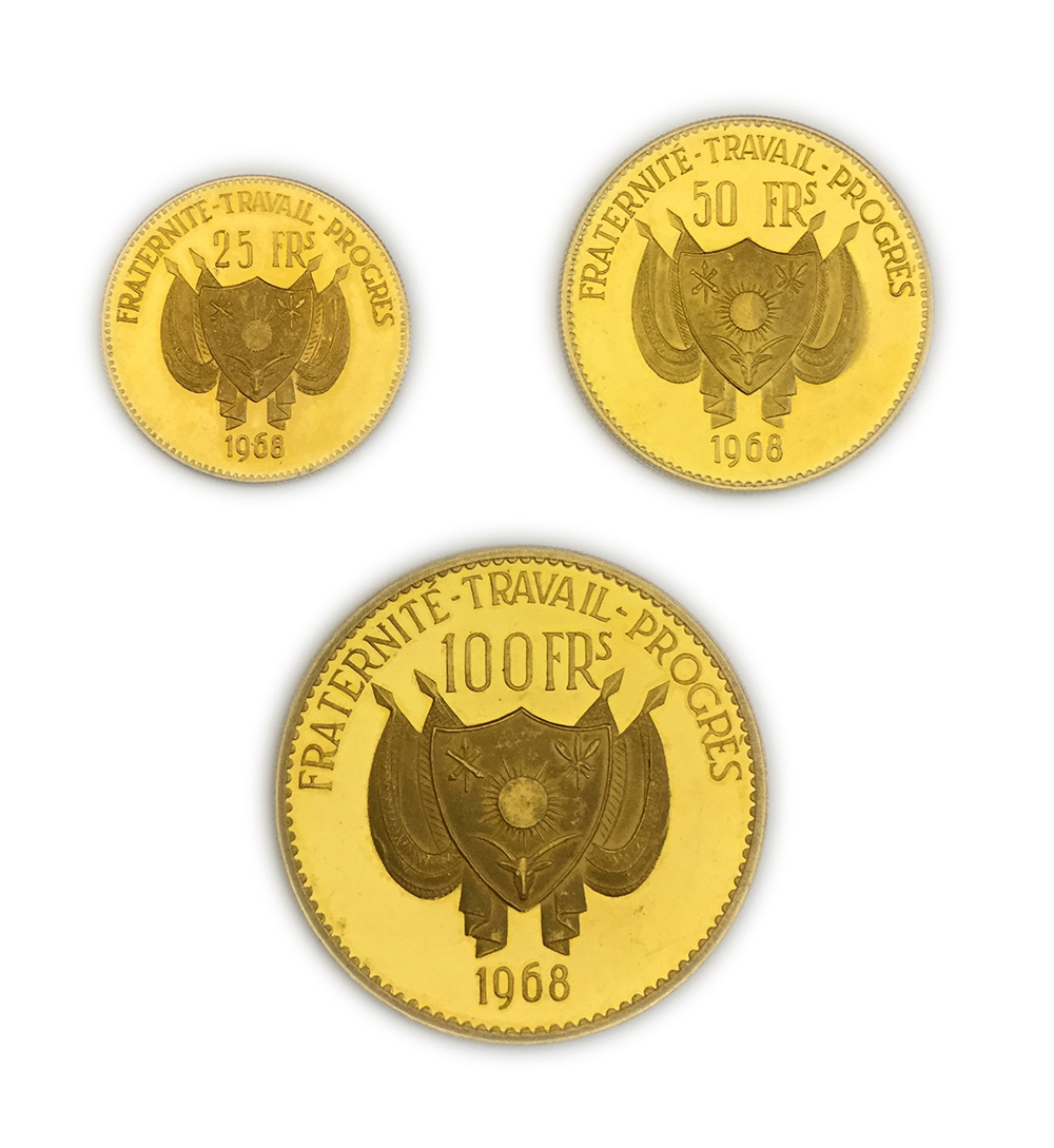 NIGERLotto di tre monete da 100, 50 e 25 franchi. AU.