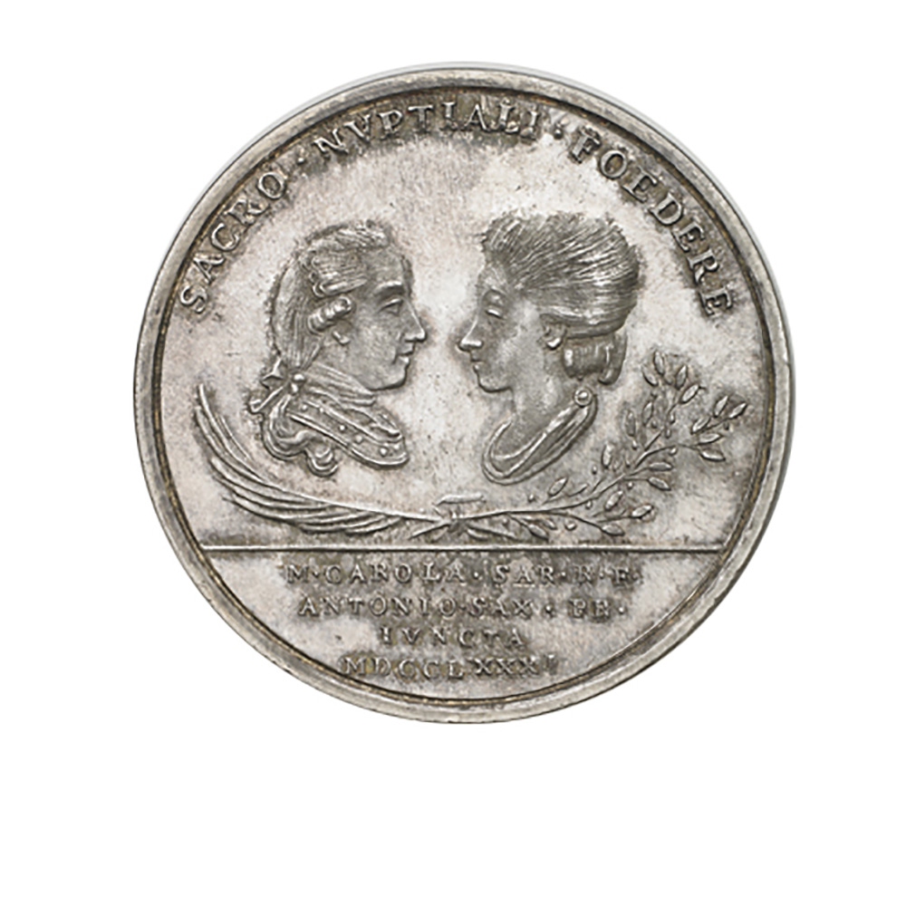 Medaglia in argento 1781 per le nozze di Maria Carola di Savoia con Antonio di Sassonia (mm 42). U.v.S. 28-30. Più di SPL.