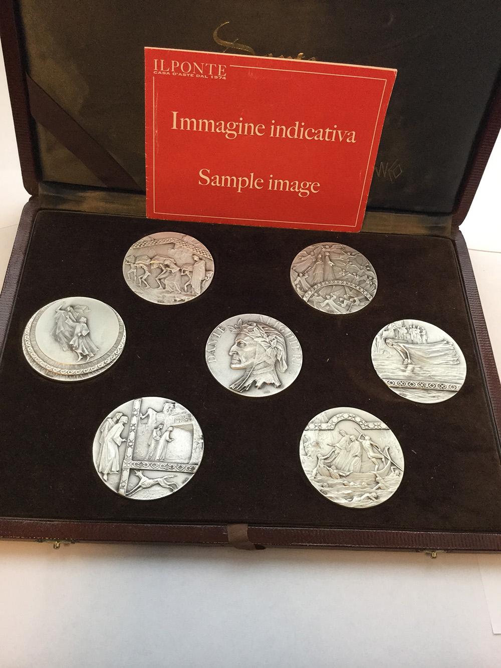 15 medaglie, in argento e altri metalli (di cui 7 in argento) serie Dante, La Divina Commedia, in astuccio; e 4 in argento Le Stagioni, di Emilio Greco, in astuccio. Da SPL a FDC.