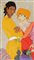 CIVITARESE GIORGIO (n. 1936) Figure con natura morta. Serigrafia polimaterica su stoffa damascata. Cm 60x100. Tir. LXXX1X/CL in basso a destra. Al retro cartiglio descrittivo Galleria d'arte Nuovo Segno. Firma in basso a destra.
