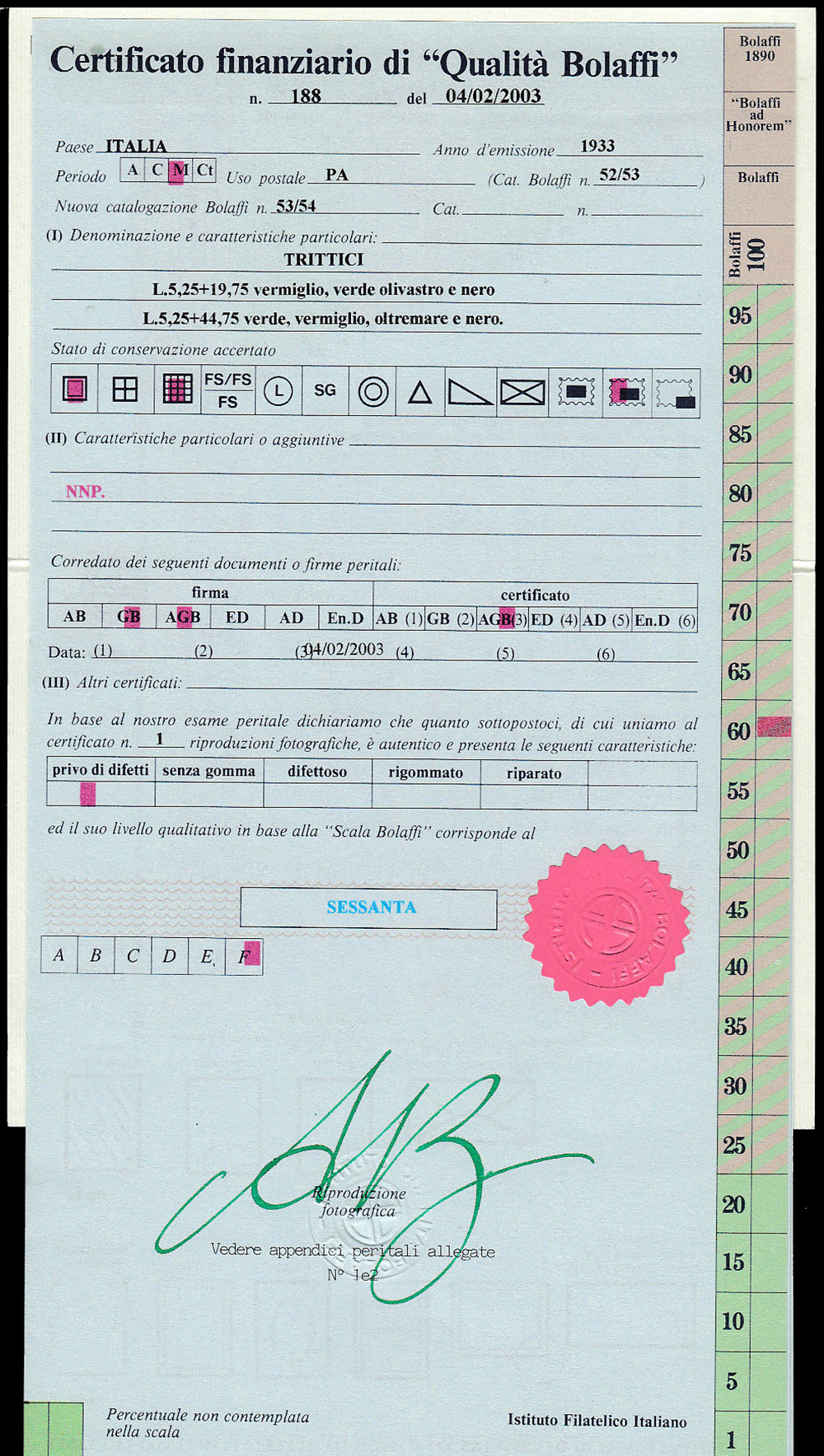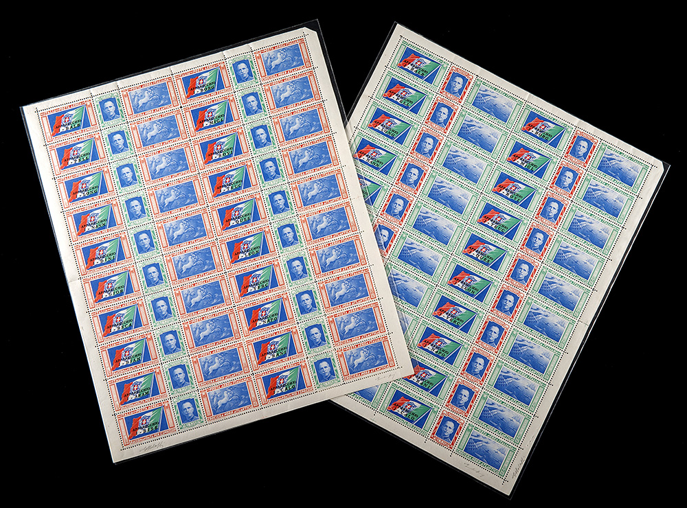 Posta aerea "Crociera del Decennale". Fogli completi di 20 valori della serie "Trittici"