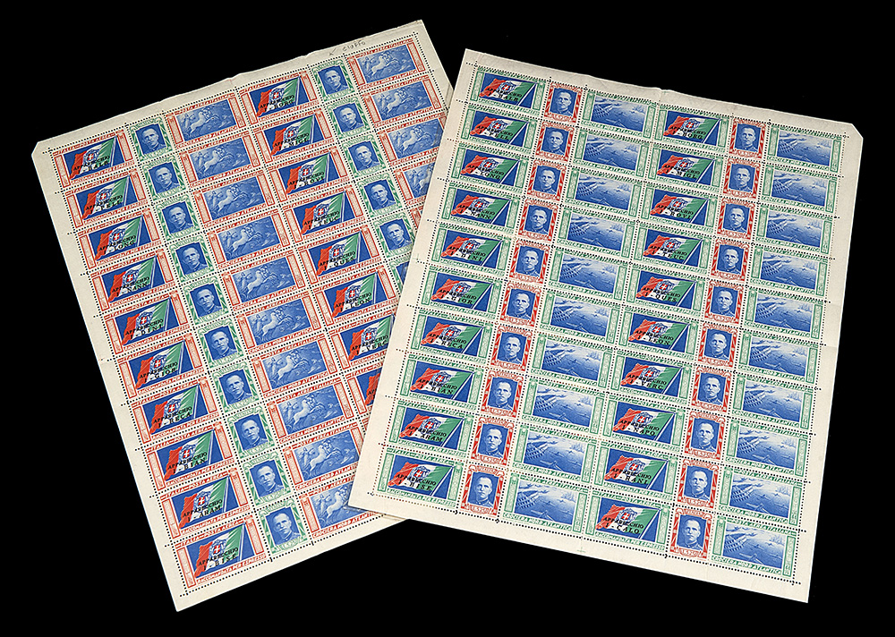 Posta aerea "Crociera del Decennale". Fogli completi di 20 valori della serie "Trittici".
