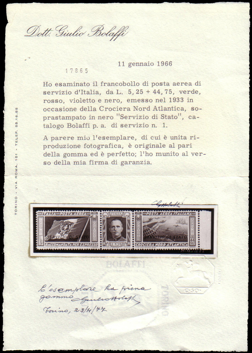Cert. G. Bolaffi