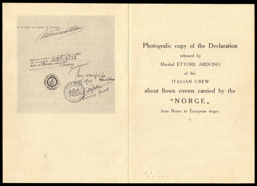 REGNO D'ITALIA 1926 (8 apr.)Posta aerea transpolare Nobile, dirigibile...