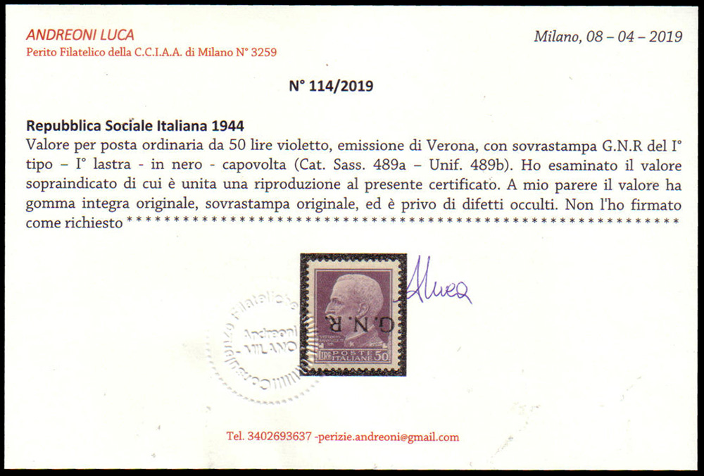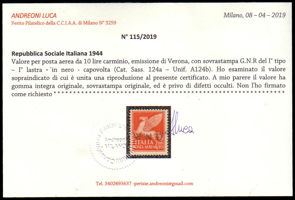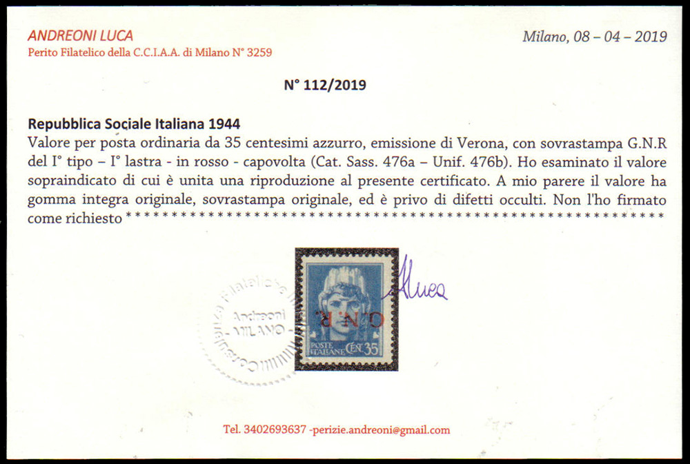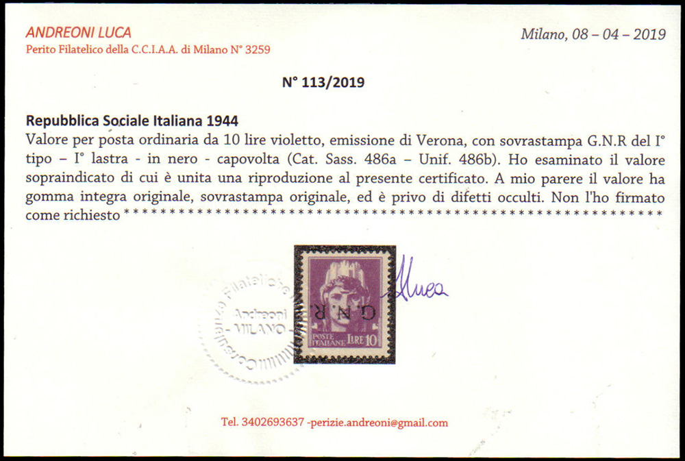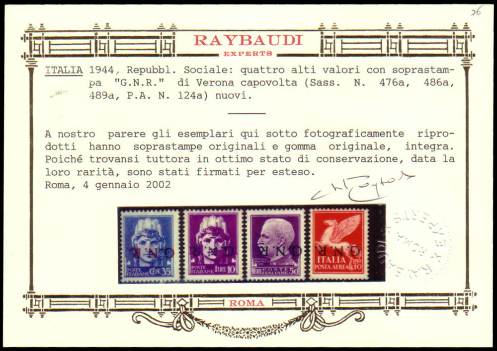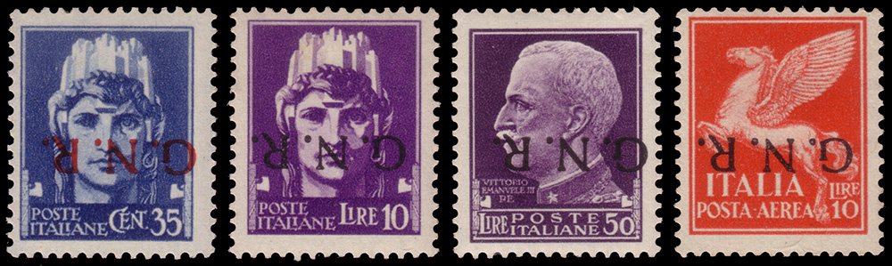 Lot 166 | R.S.I. 1944Insieme di 4 valori con soprastampa "G.N.R." di Verona...