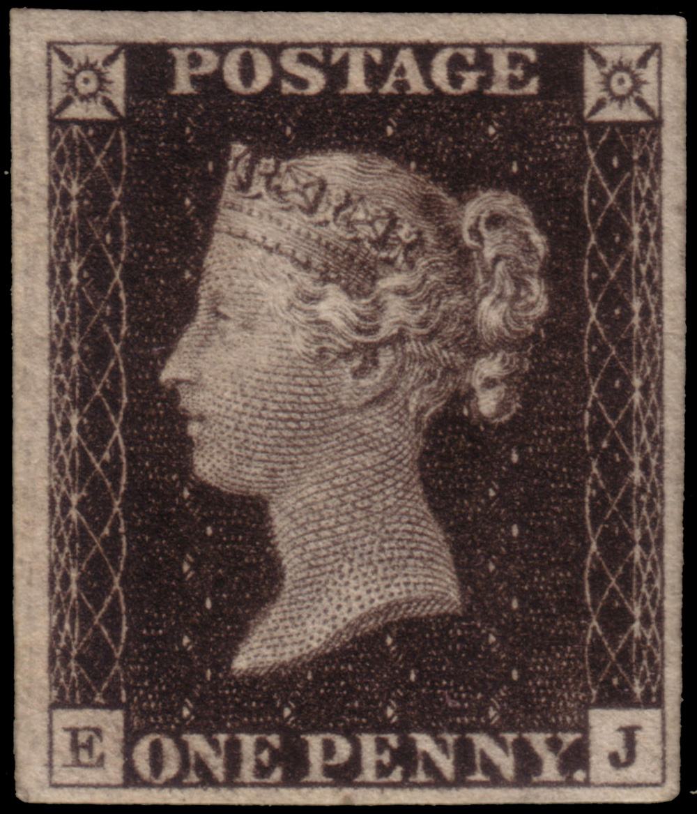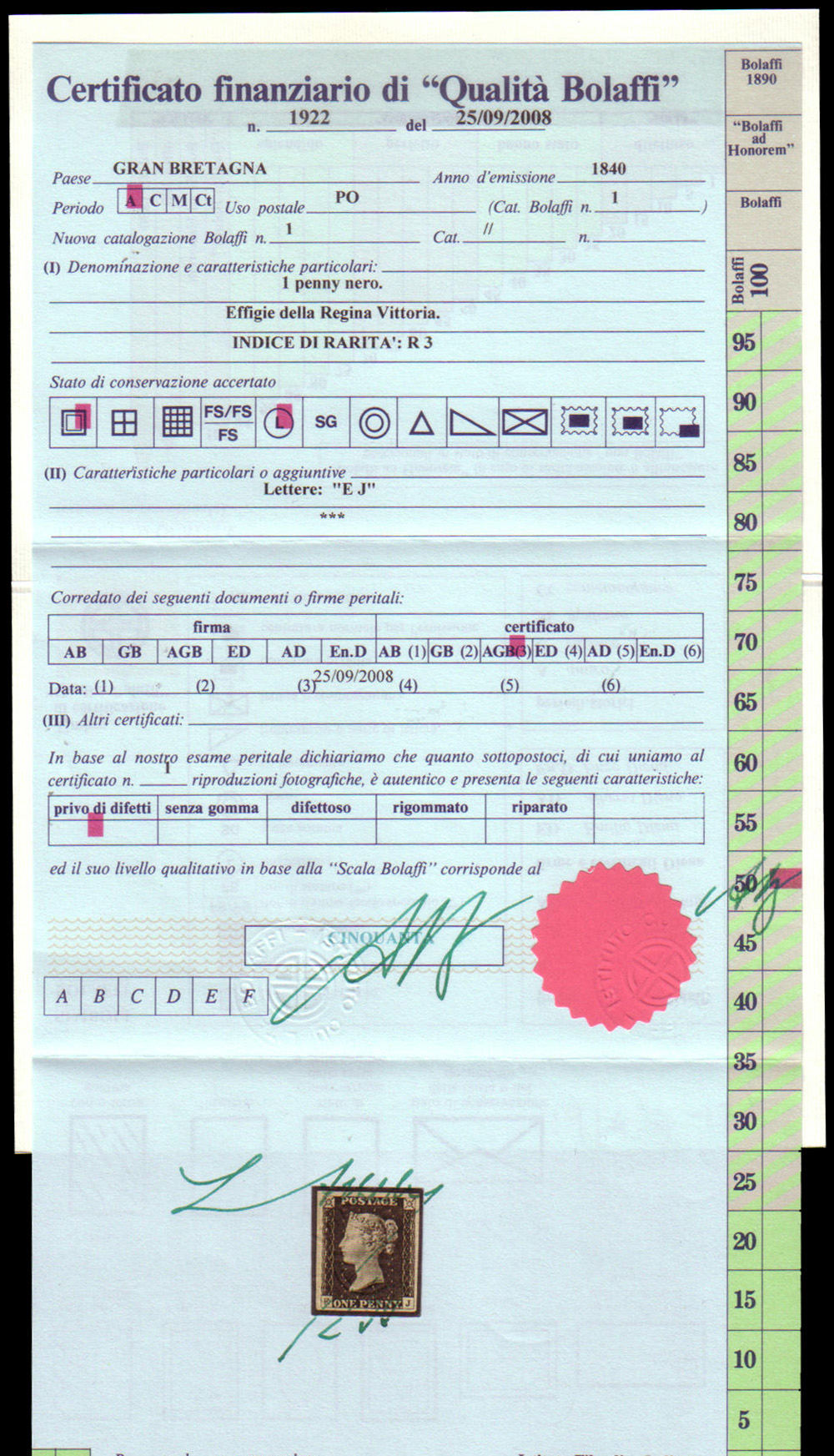 GRAN BRETAGNA 18401d nero "Penny black", lettere E-JProvenienzaCollezione...