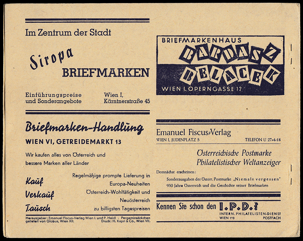 Foglietti "Renner". Serie completa di 4 esemplari in un raccoglitore dedicato