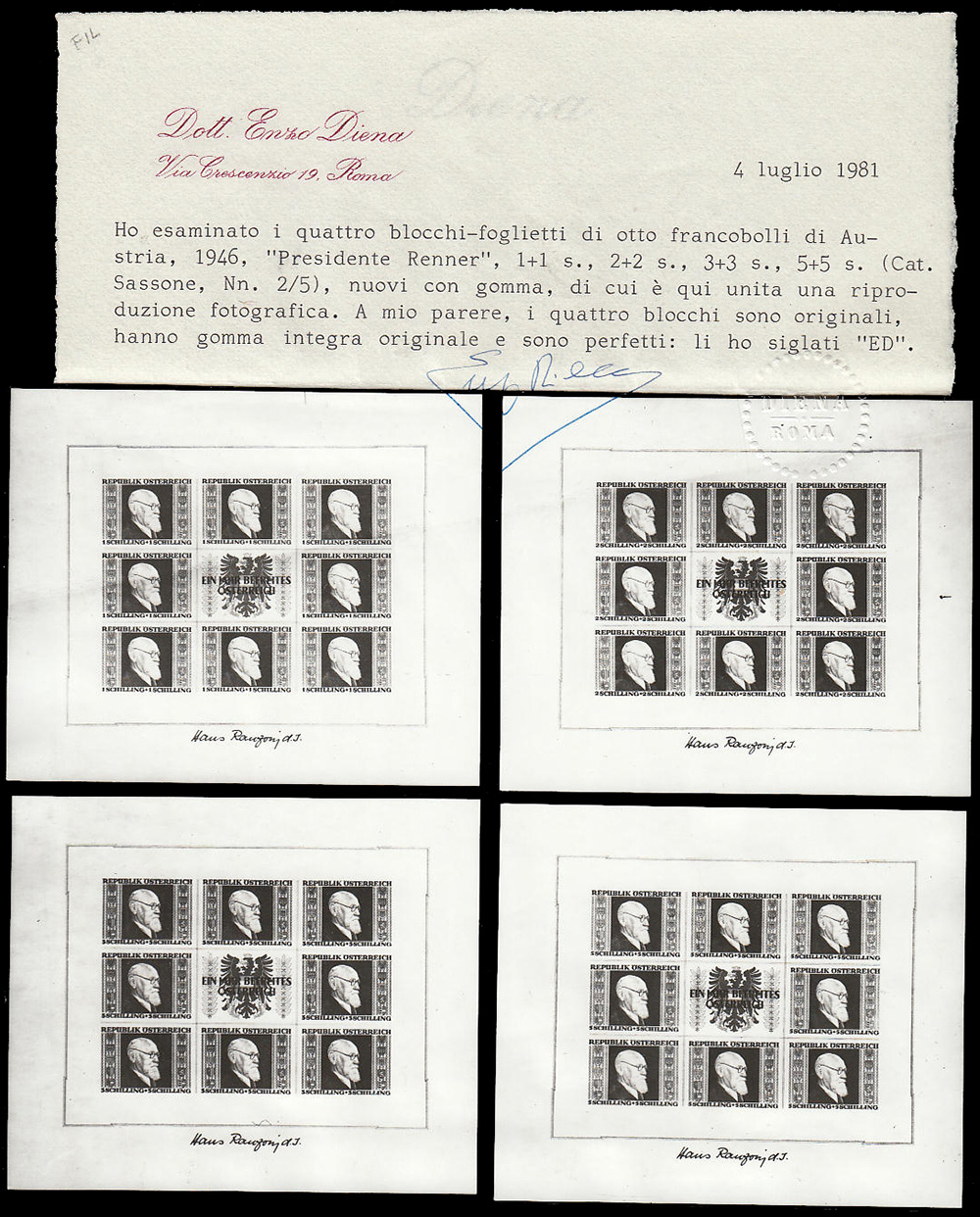 AUSTRIA 1946Foglietti "Renner". Serie completa di 4 esemplari in un...