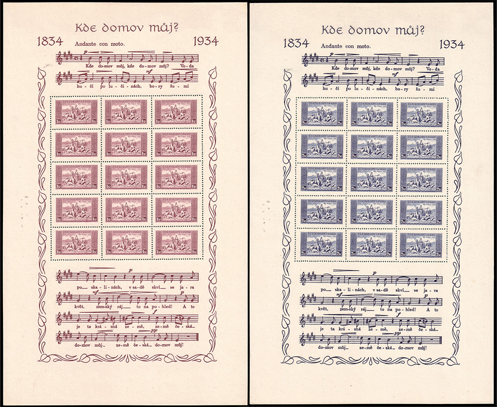 CECOSLOVACCHIA 1934"Centenario dell'inno nazionale". Serie completa di 2...