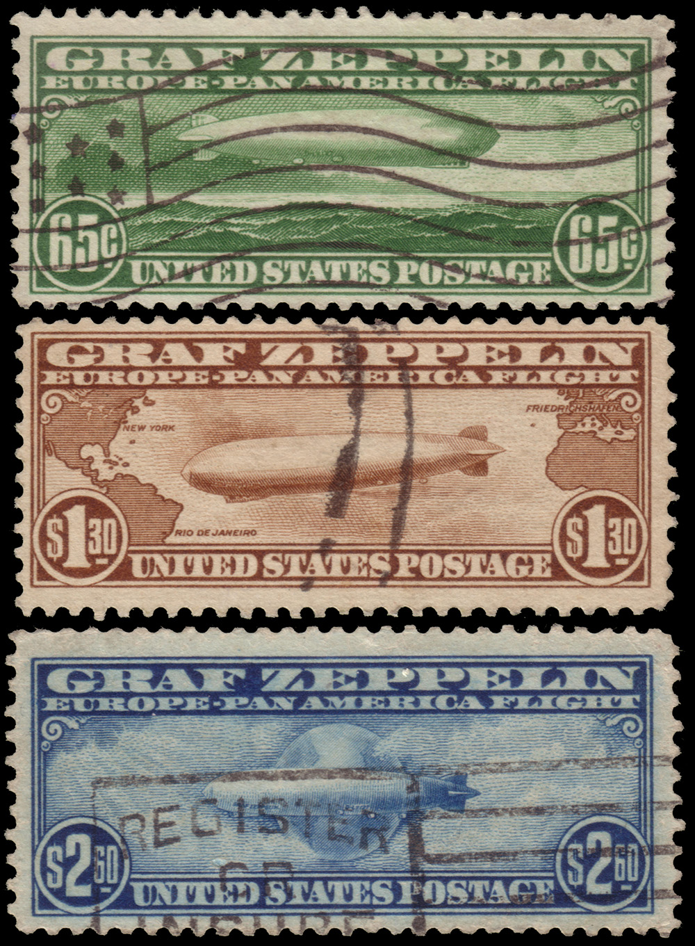 Posta aerea "Zeppelin". Serie completa di 3 valori