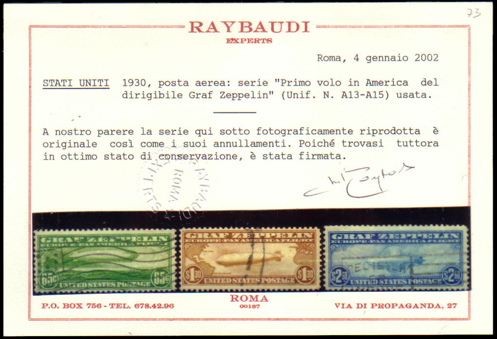 STATI UNITI 1933Posta aerea "Zeppelin". Serie completa di 3 valoriCert. M....