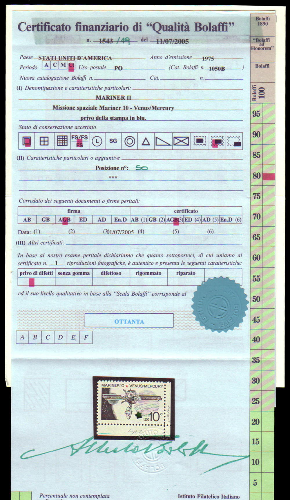STATI UNITI 1975Varietà. 10c. "Mariner II" privo della stampa in...