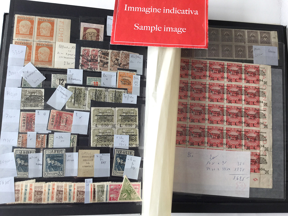 Corposo lotto formato emissioni del periodo, principalmente nuove, anche in blocchi e con varietà. Notati molti esemplari rari, principalmente di Fiume. Da esaminare