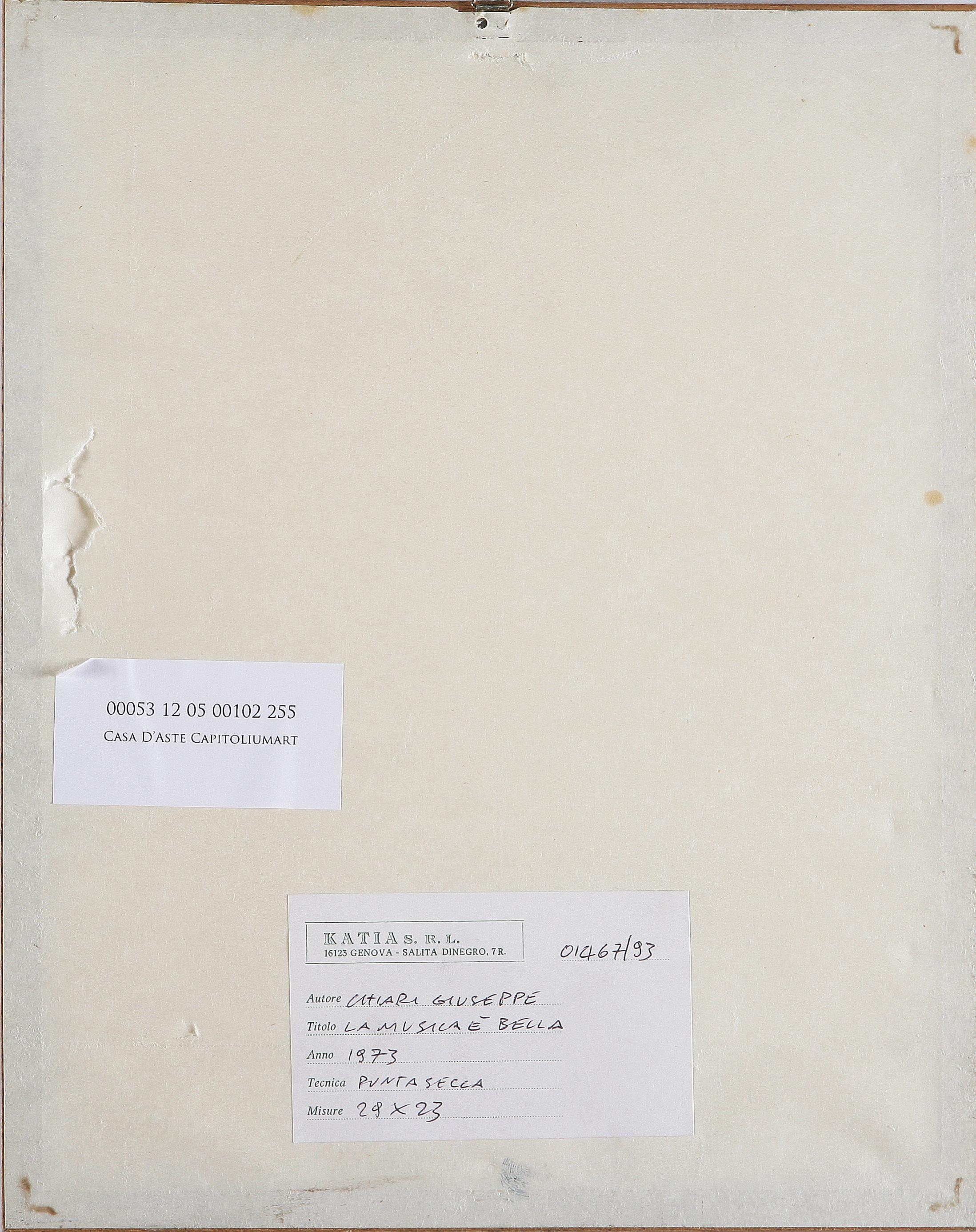 CHIARI GIUSEPPE (1926 - 2007) La musica è bella. 1973. Puntasecca. Cm 23x29. Tir. a matita 1/20. Al retro cartiglio Katia SRL Genova con relativo numero di repertorio. Firma e data a matita in basso a destra.