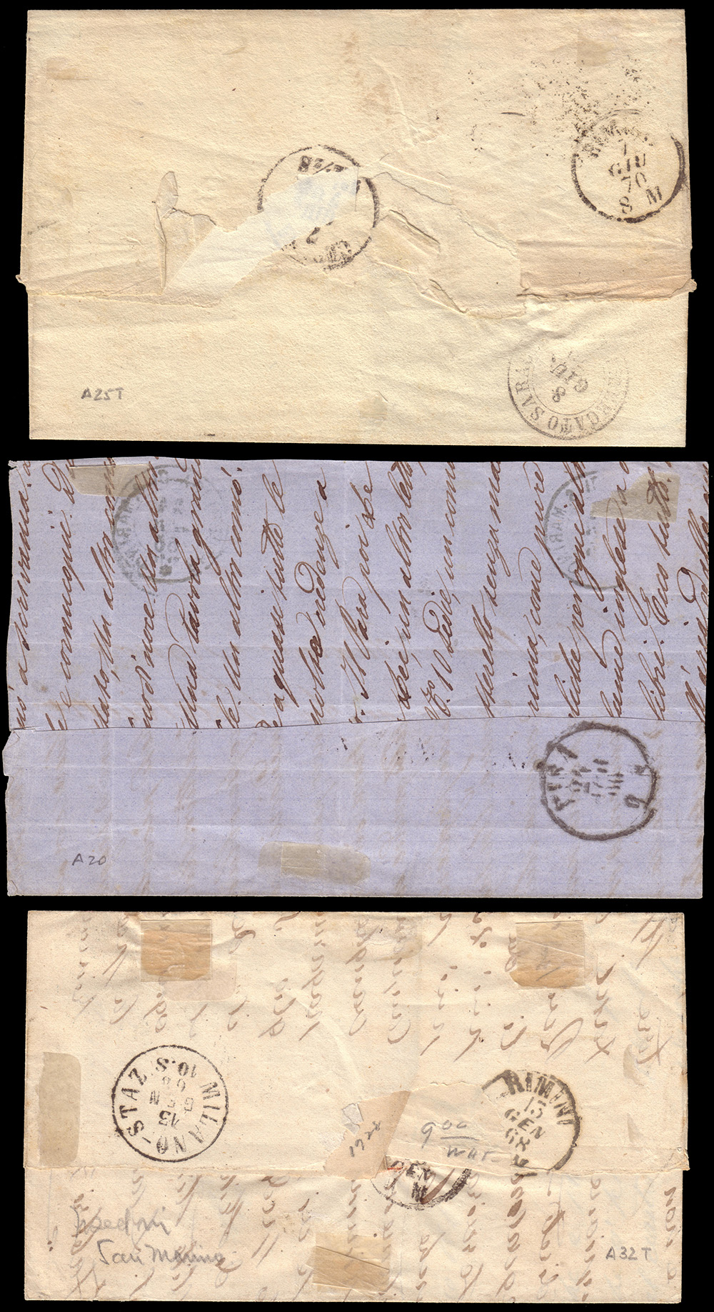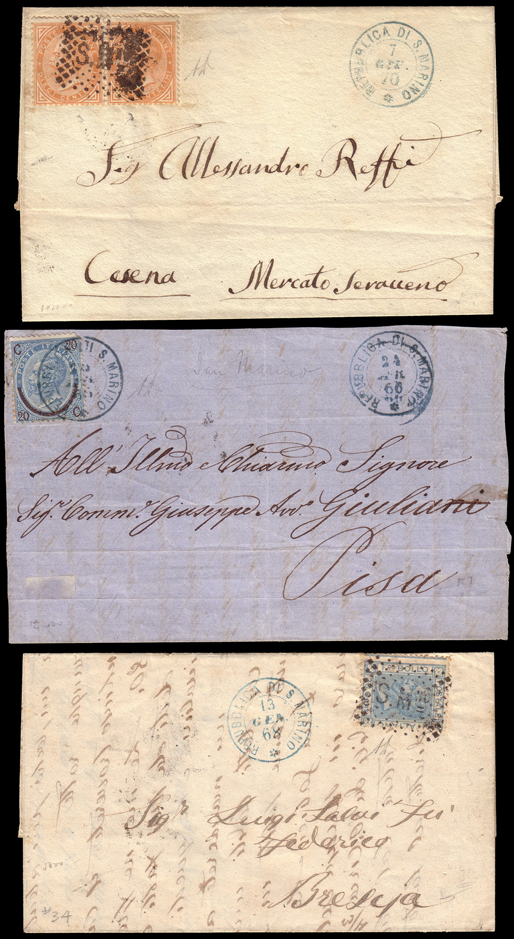 SAN MARINO 1866//1870Insieme di 2 lettere e un frontespizio con annullo di...