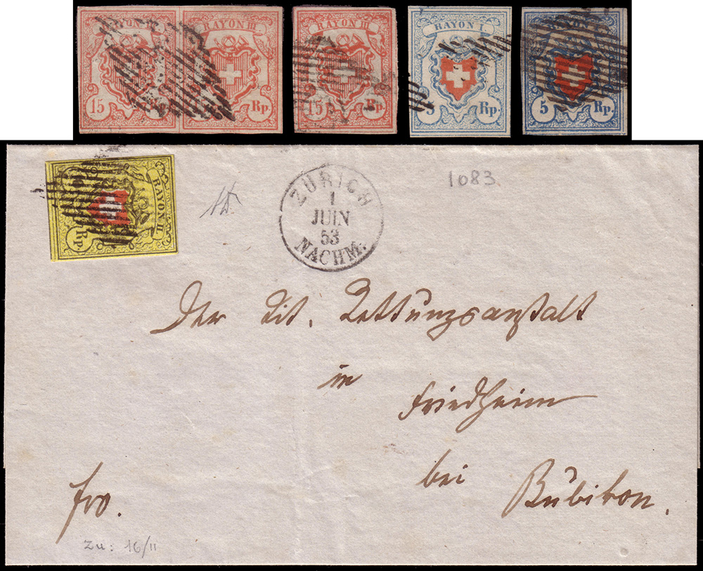 SVIZZERA Poste federali.Lotto formato da 4 francobolli e una lettera. Da...