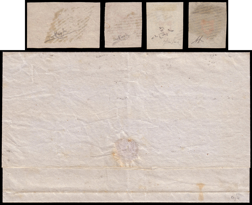 Lotto formato da 4 francobolli e una lettera. Da esaminare