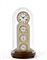 Skeletonized clock with four dials for hours, minutes and calendar, under glass bell