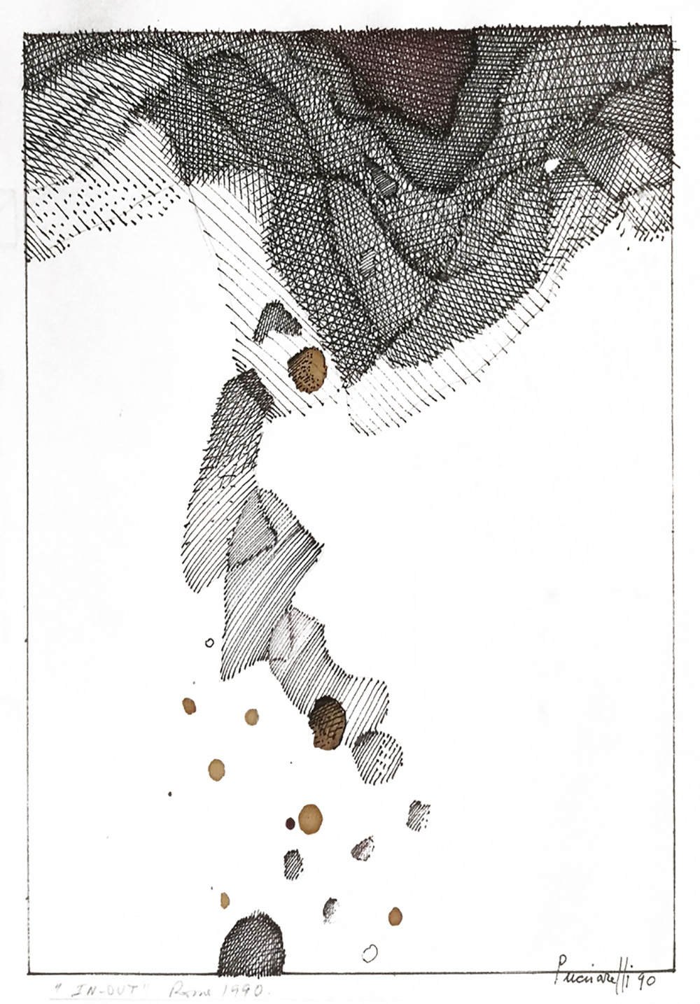 Mario Pucciarelli Buenos Aires 1928 In - Out (1990) tecnica mista su carta 33 x 23