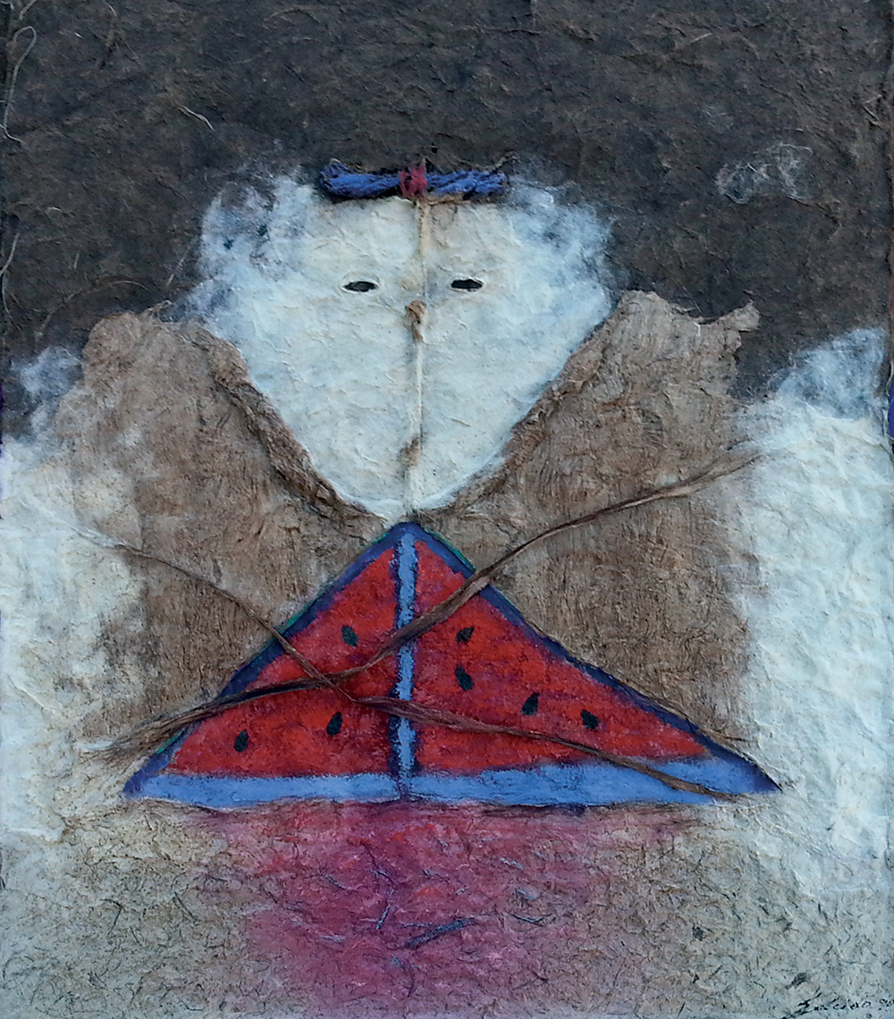Jorge Eduardo Salcido Culiacalan Sinaloa (Messico) 1948 Legato al triangolo tecnica mista su legno - stoffa 50 x 40