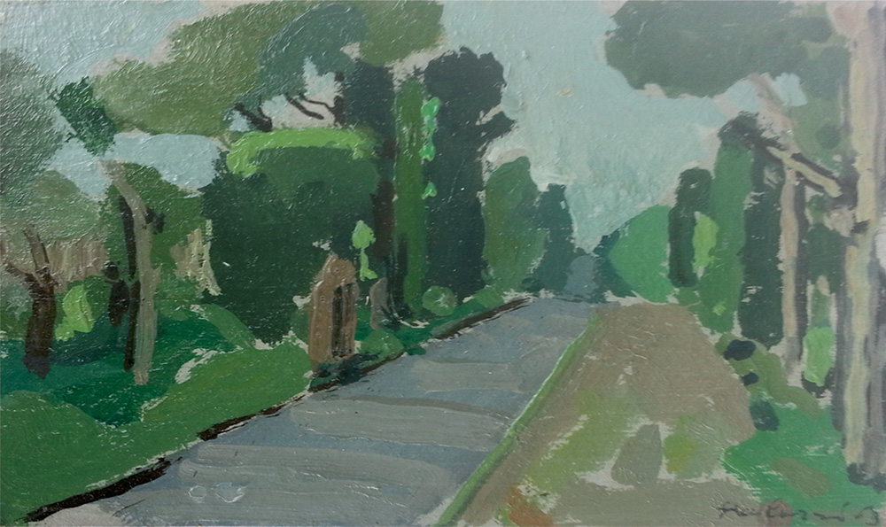 Bernardino Palazzi Nuoro 1907 - Roma 1986 Appia Antica, 1963 olio su tavola 10 x 14