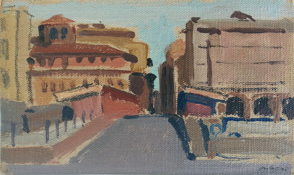Bernardino Palazzi Nuoro 1907 - Roma 1986 Trastevere, 1967 olio su tavola 10 x 13