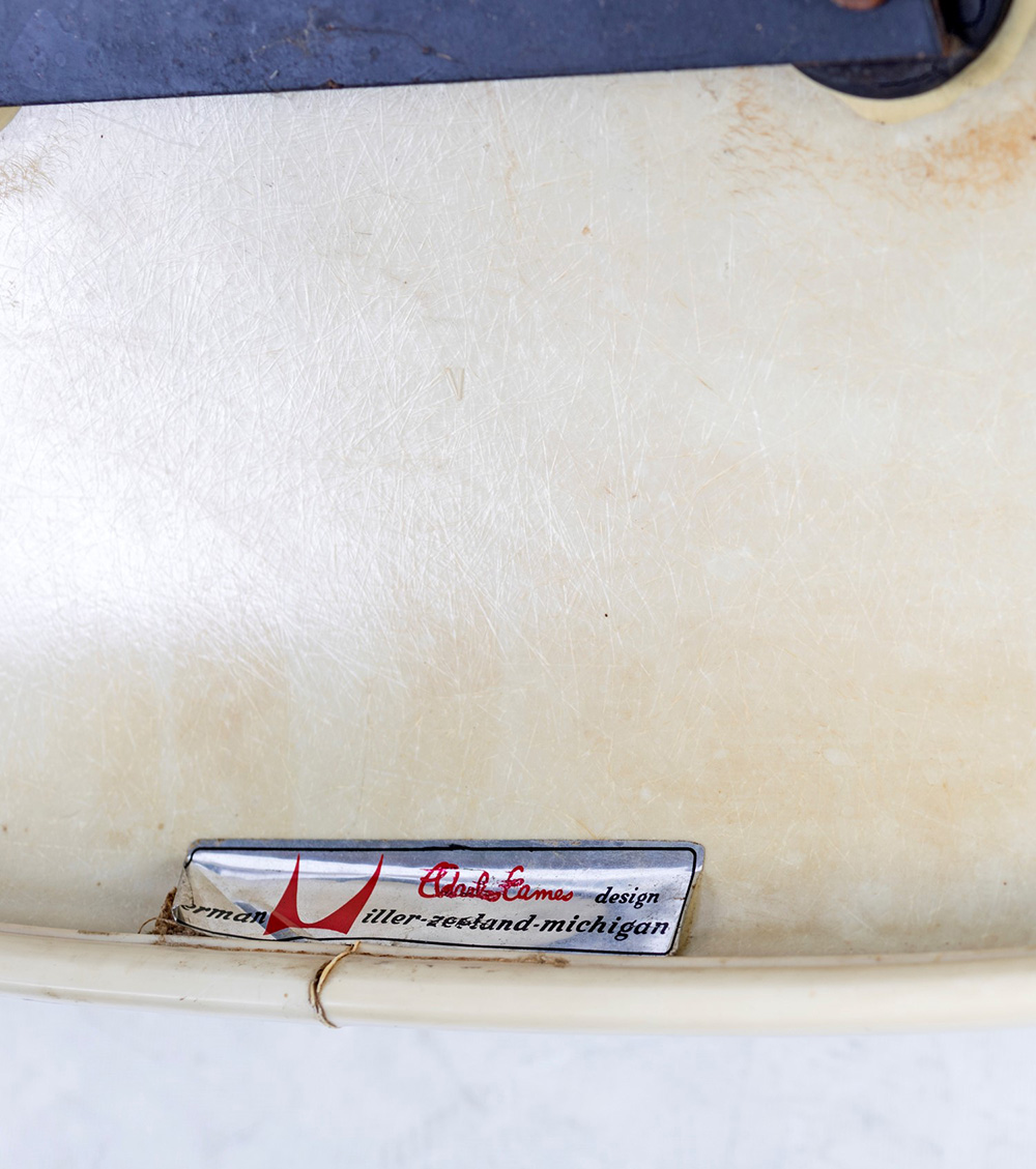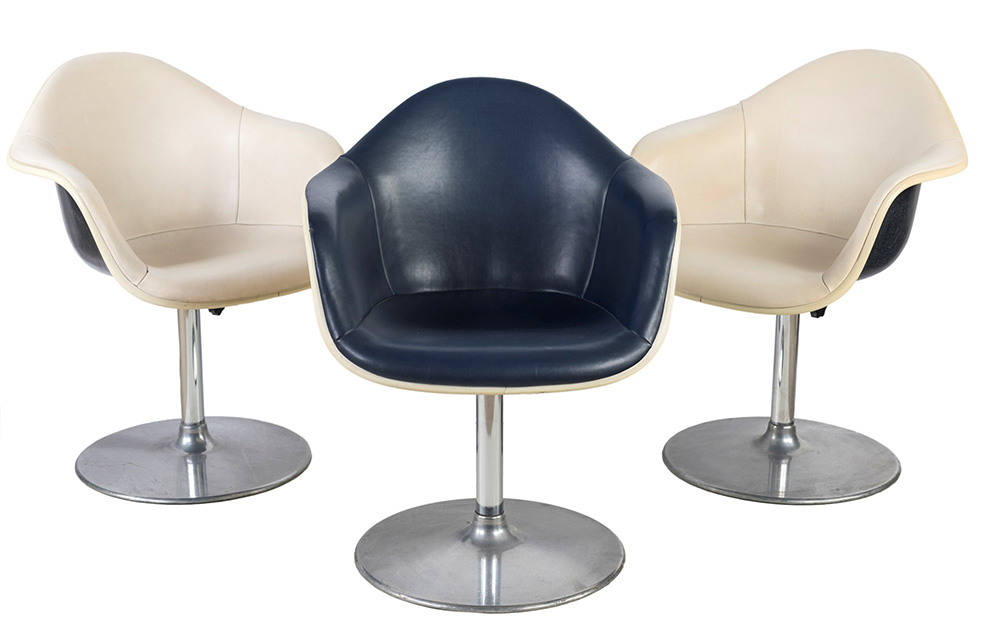 Sedute "La Fonda" (tre) con scocca in plastica , rivestimento in pelle base in acciaio targhetta originale Prod Herman Miller U.S.A 1950 cm 85x63x60